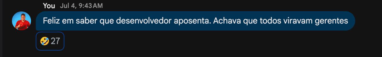 resposta ao post foi “Feliz em saber que desenvolvedor aposenta. Achava que